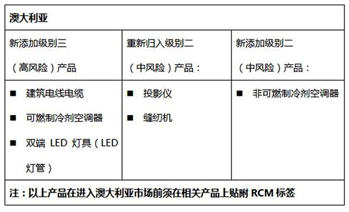 5. RCM认证法规AS/NZS 4417.2:2012修订版已于2017 年1月14日正式强制执行。其内容针对RCM电气产品风险等级划分范围, 重新进行分类。